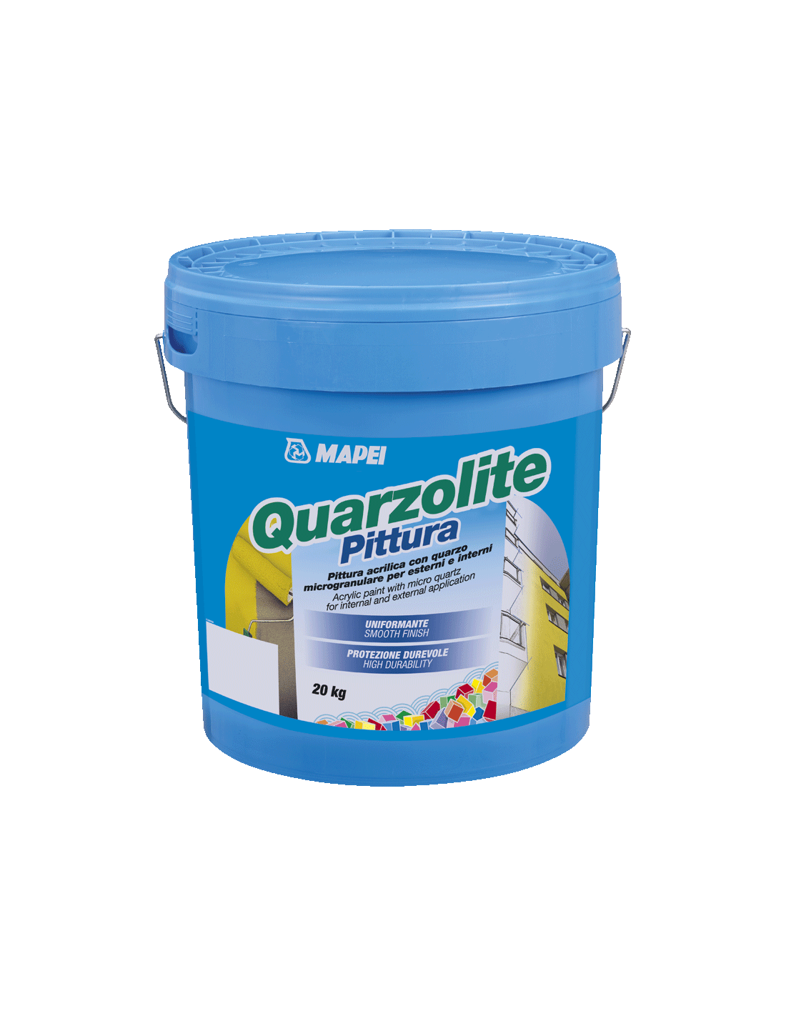 Pittura acrilica con quarzo microgranulare, per esterni e interni, uniformante e a protezione durevole.