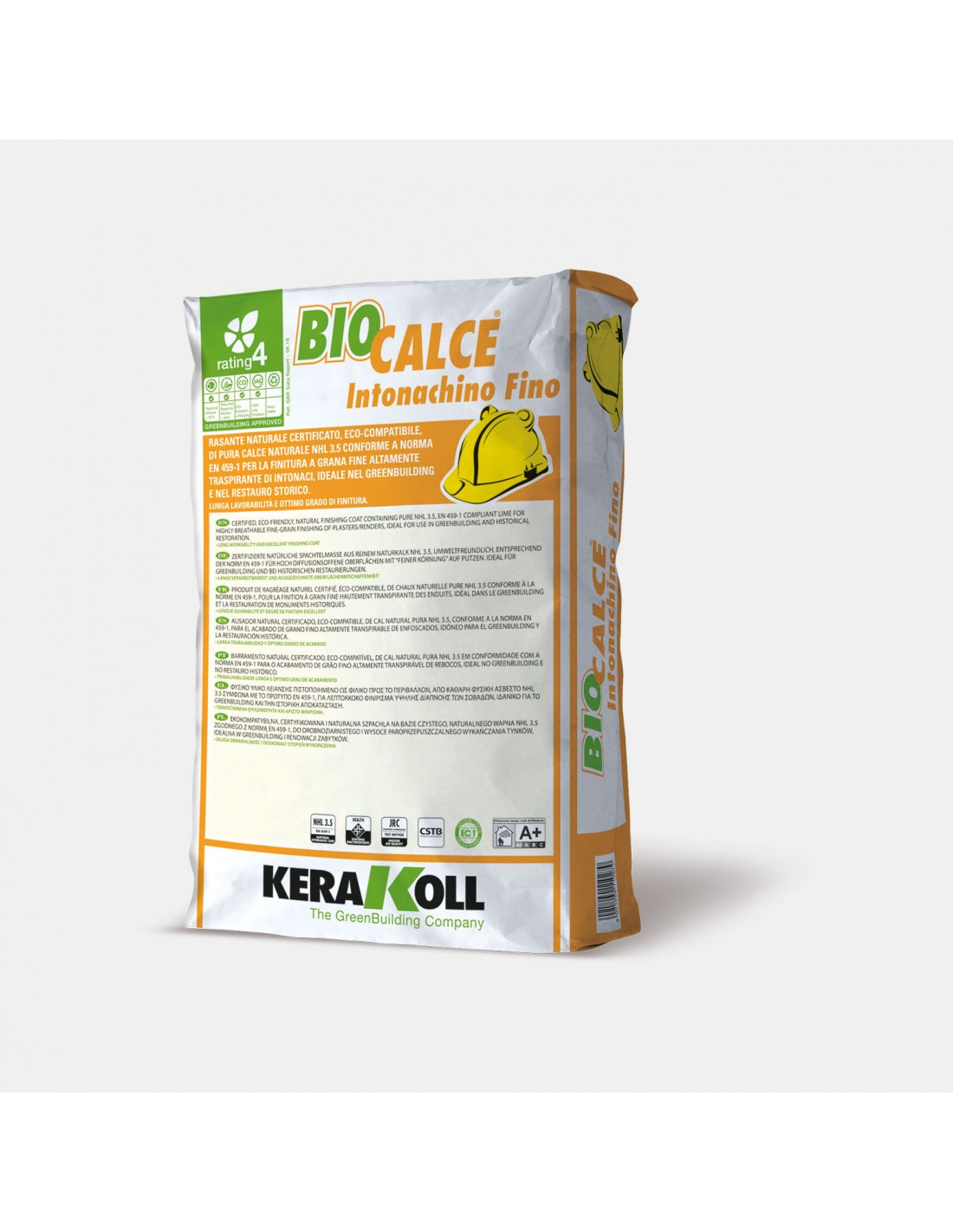 Rasante naturale certificato, eco‑compatibile, di pura calce naturale NHL 3.5 a norma EN 459‑1, per la finitura a grana fine altamente traspirante di intonaci, ideale nel GreenBuilding e nel Restauro Storico.