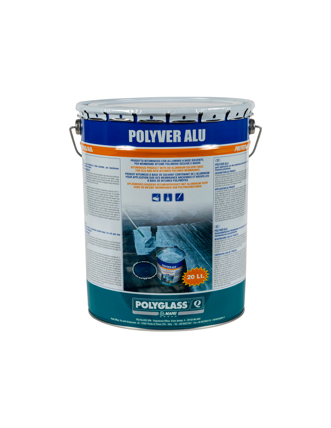 POLYVER ALU è una pittura protettiva a base di bitumi ossidati, resine selezionate al solvente, additivato con pigmenti metallici di alluminio.