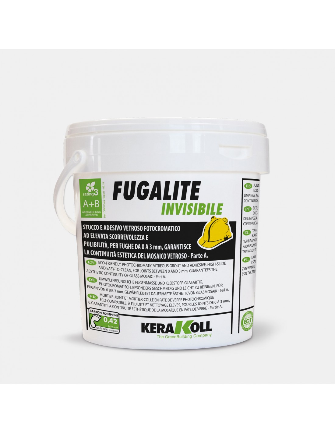 Fugalite® Invisibile è finissime microperle di vetro riciclato ad elevato potere rifrangente per incollare e stuccare senza interruzione della continuità estetica, funzionale e igienica, i rivestimenti di mosaico vetroso, legno ceramico e pietra ceramica a basso spessore. Fugalite® Invisibile è la soluzione per mantenere intatta la bellezza dei mosaici vetrosi artistici e dei blends.